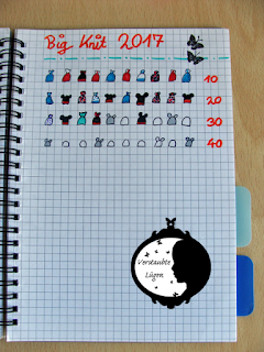 Die Reading Challenge befindet sich natürlich auch in meinem Journal. Wenn ich ein Buch fertig gelesen habe, dann male ich die Zahl blau an.